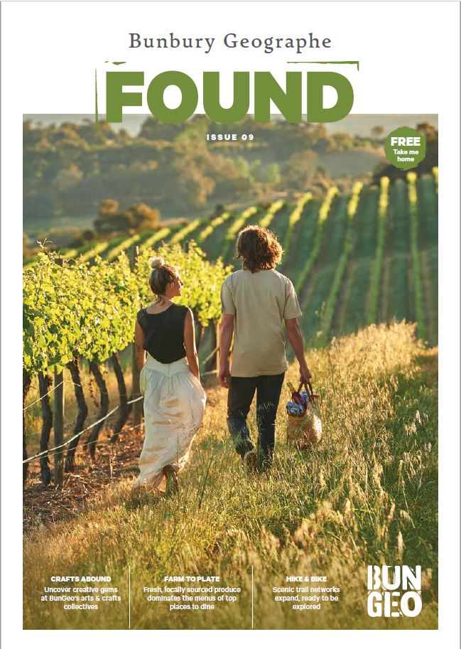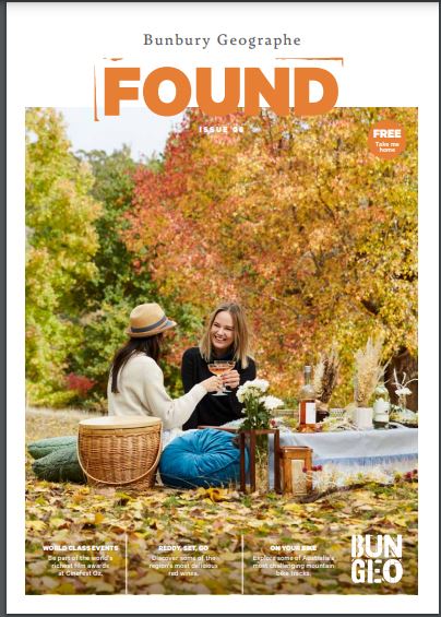 Our second edition of FOUND magazine will have even the most intrepid traveller twitching their itchy feet ready to visit the diverse Bunbury Geographe region. In this issue, find your taste buds craving to indulge in the culinary possibilities on the Rustic Trail – perfect for the picnic basket.